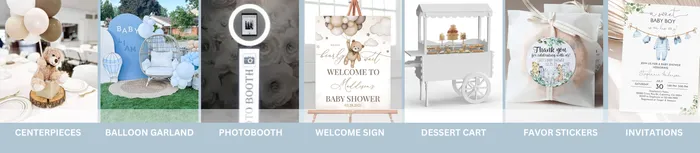 Ask about our collection of **Adorable Photo Backdrops, themed stickers, Centerpieces and More.